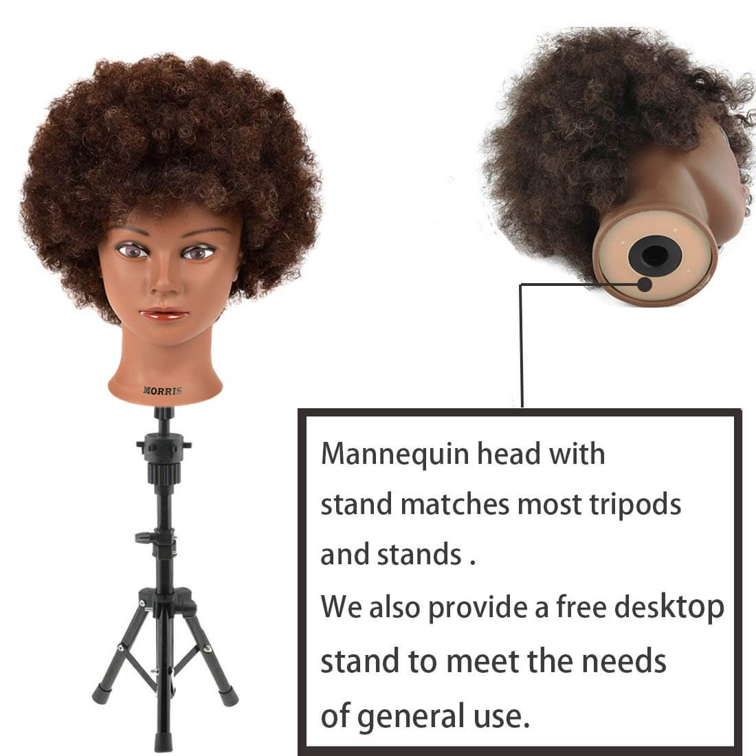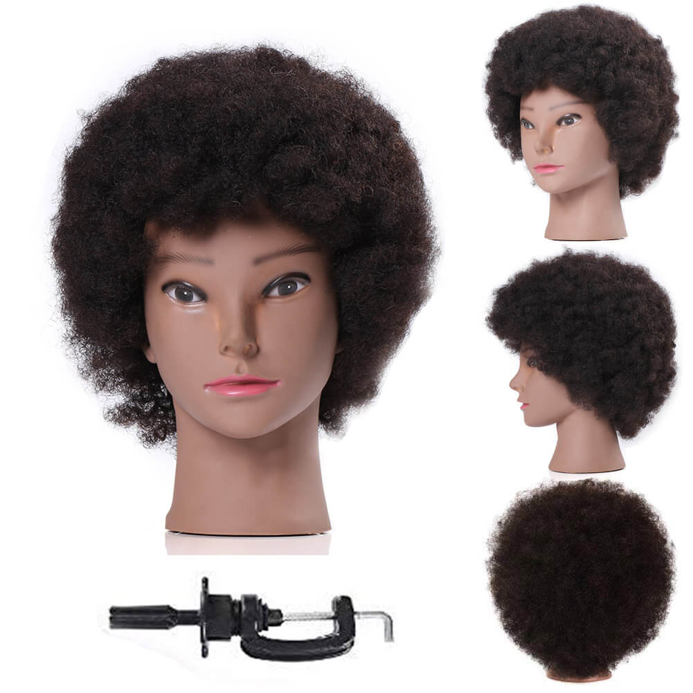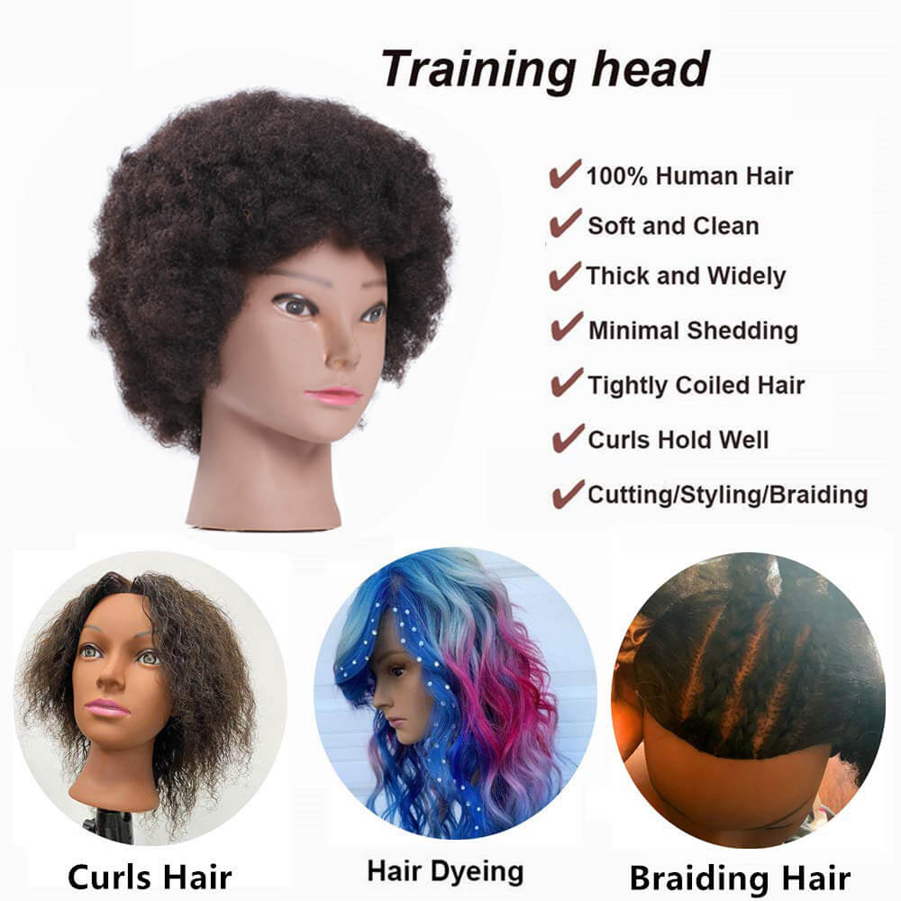 Afro Mannequin Head with 100% Human Hair Cosmetology Doll Head Hairdresser Training Head Manikin Head for Practice Styling Braiding Hair