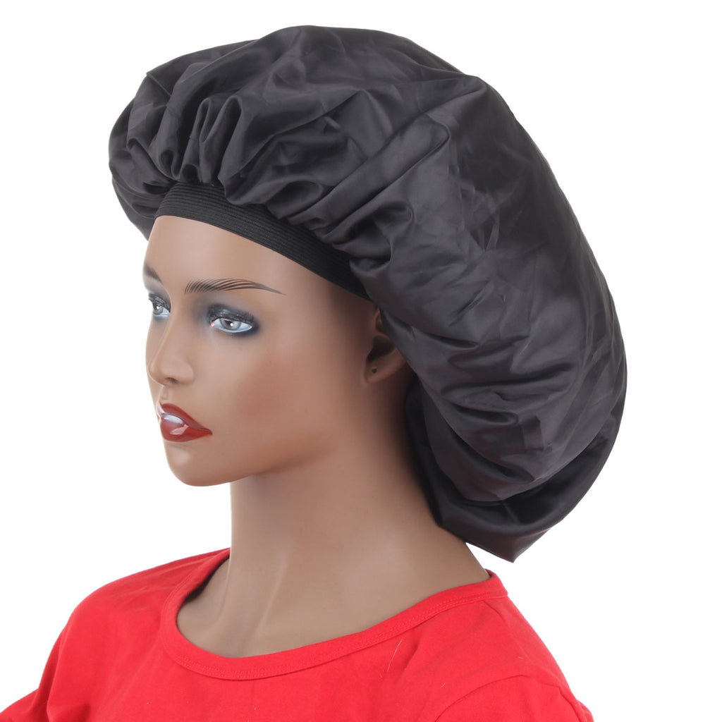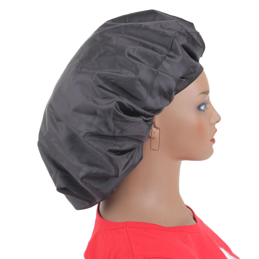 Big Size Satin Sleep Cap High Quality Waterproof Shower Cap Protect Hair Women Hair Treatment Hat Black