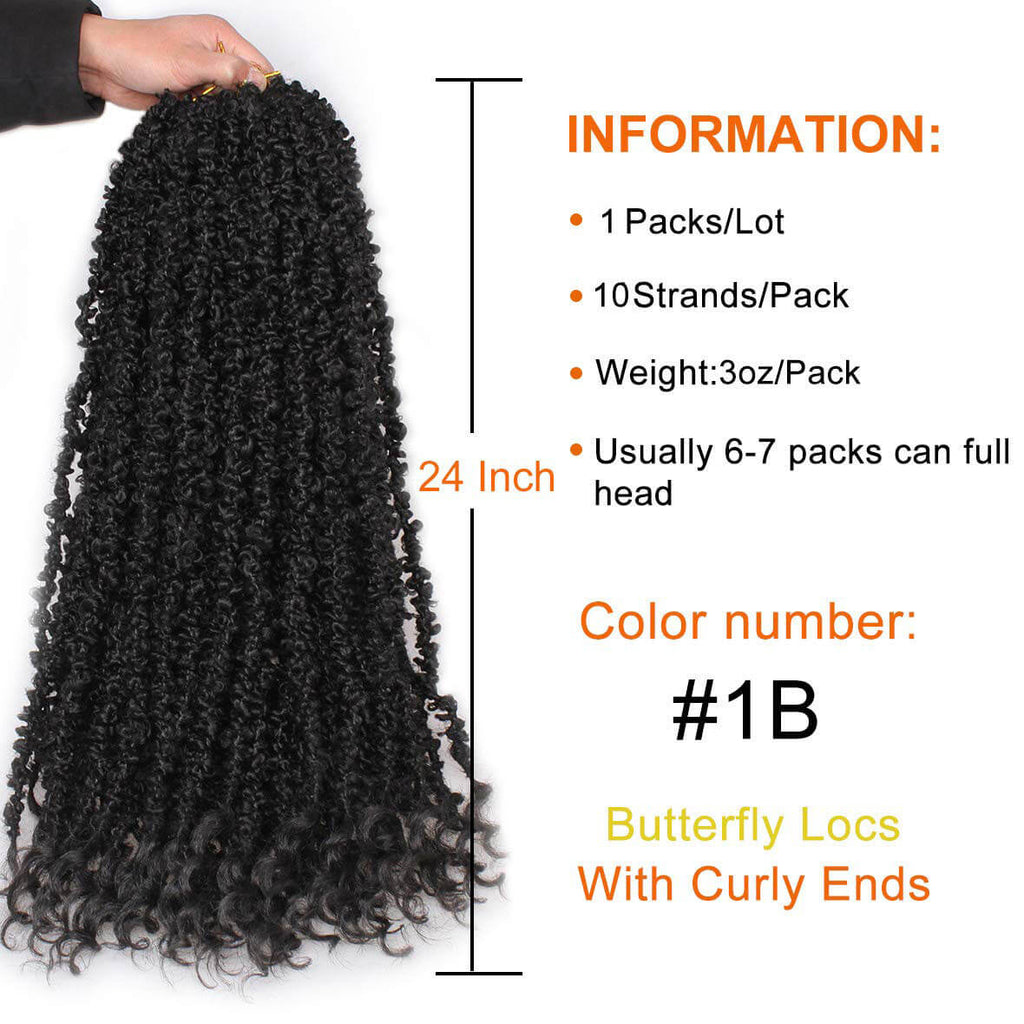 | Hair Information | Butterfly Soft Locs Hair With Curly Ends. Length: 24 inch.10 strands/pack,6 pack/lot.Usually 6-7 packs can full one head. |