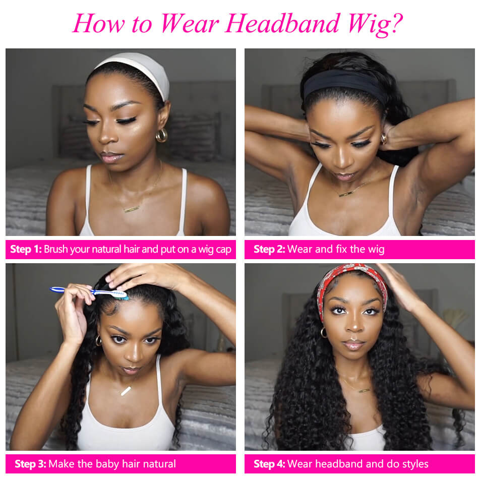 HeadBand Wigs Curly Human Hair Wig Brazilian Remy Deep Wave Human Hair None Lace Front Wigs