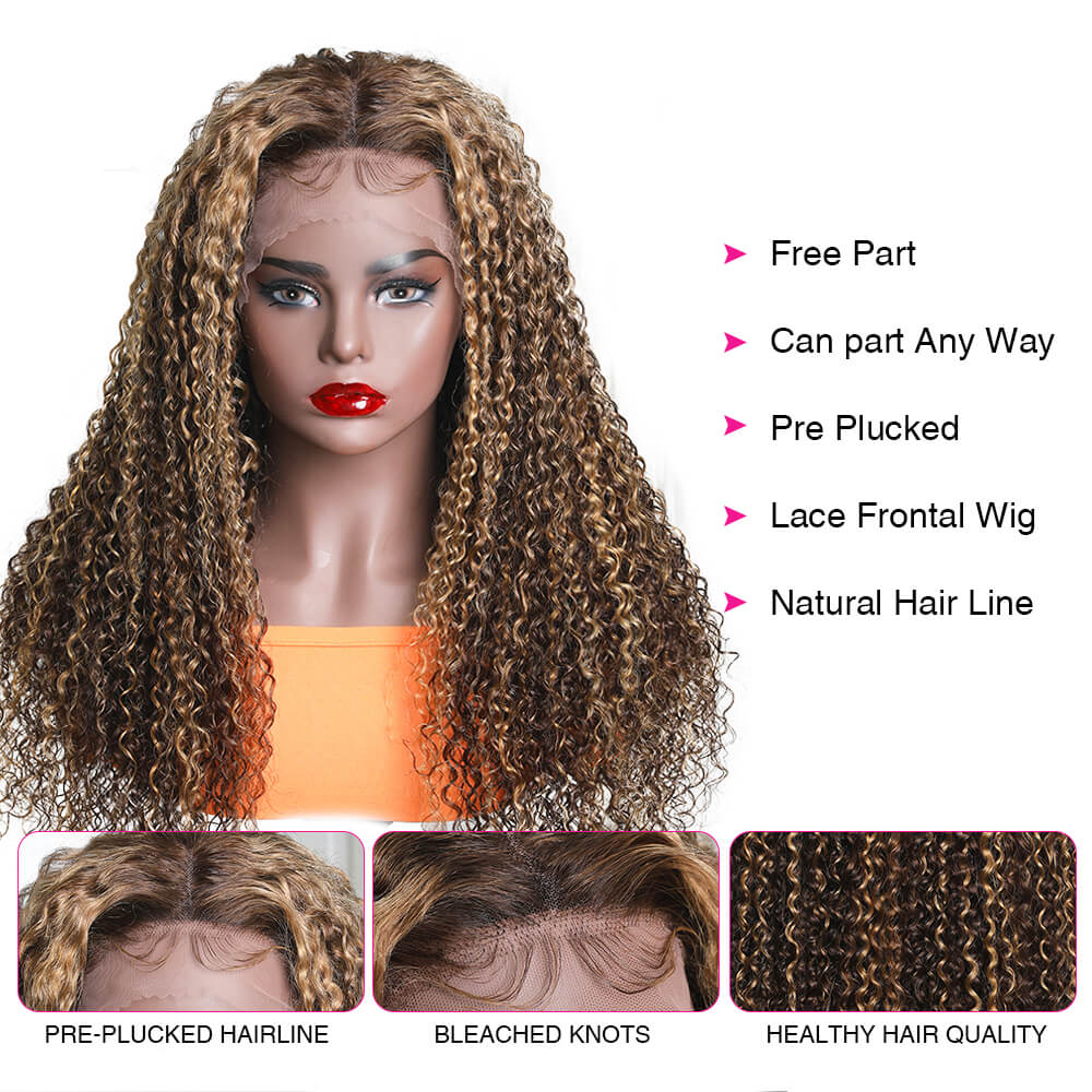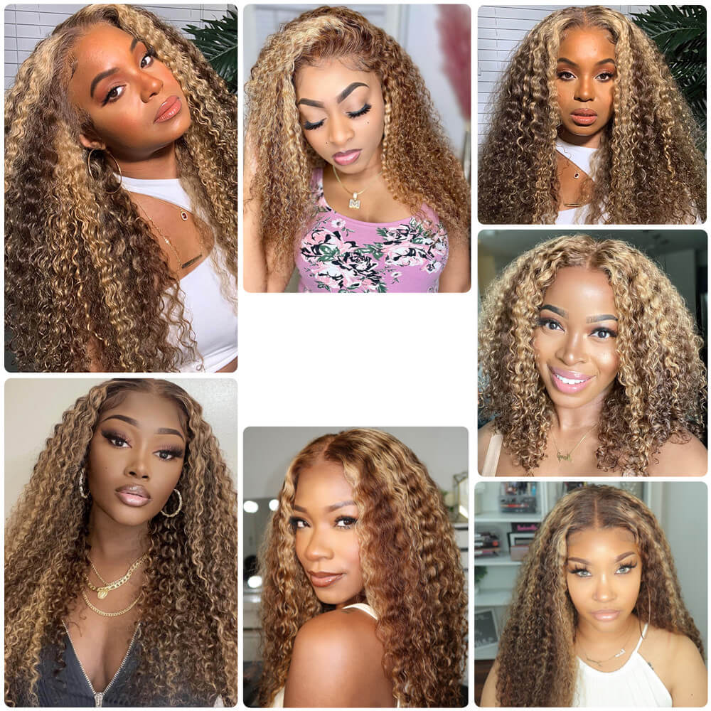 | Package & Return policy:🌺 The package includes 1 Unit ombre blonde highlight curly lace front human hair wig Multiple gifts. If you don’t like the wig, We accept return as long as the wig is new. |