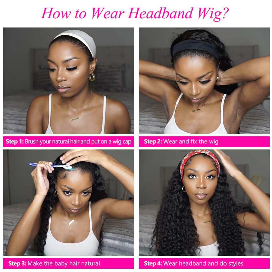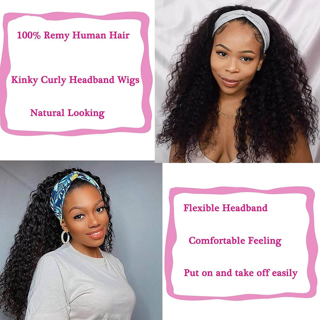 Headband Wig Human Hair Curly Human Hair Wigs for Black Women Brazilian Virgin Hair Glueless None Lace Front Wigs