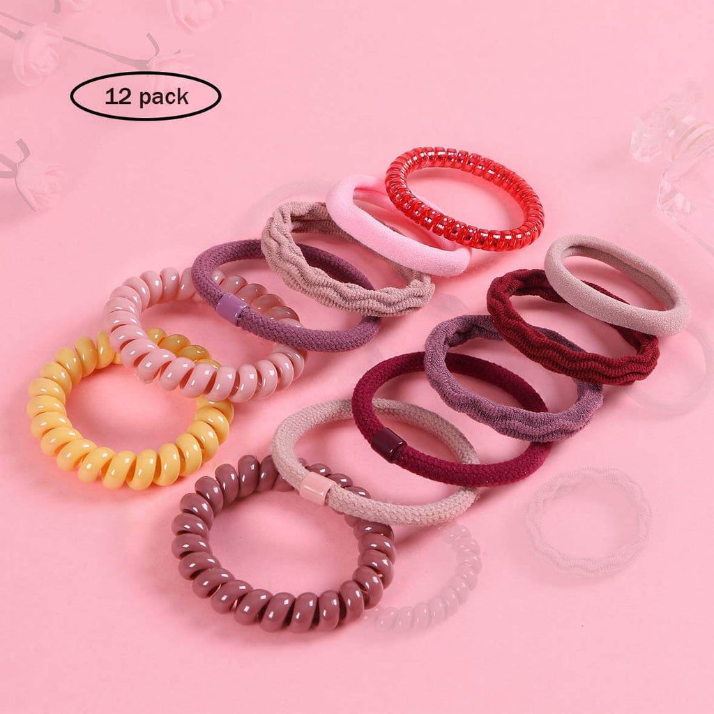 Xtrend 12 Pcs Mixed Spiral Hair Ties No Crease, Colorful Traceless Hair Ties, Elastic Coil Hair Ties for Women Girls Accessories